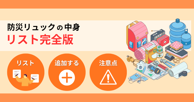 また、適切な場所に防災リュックを保管しても、中身が重すぎれば咄嗟に持ち出せません。置き場所と合わせてリュックの中身についても、知識を深めておきましょう。
