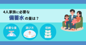 4人家族に必要な備蓄水の量について、水の選び方から保管方法も含め解説します。