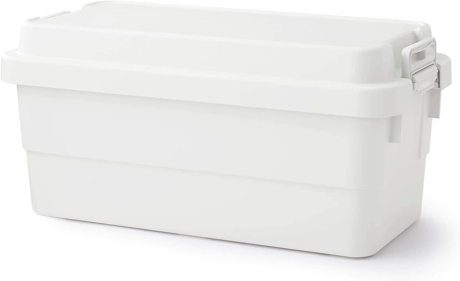 約70Lの特大容量は、2Lのペットボトルを立てて収納しても十分な余裕があり、家族全員分の水や非常食、生活用品などをまとめて一箇所で管理できます。大容量でありながら、ホワイトグレーの落ち着いた色合いと無駄のないフォルムで、部屋の隅に置いても圧迫感を感じさせません。
