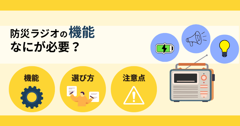 防災ラジオは、以下の機能が搭載されているか確認しましょう。